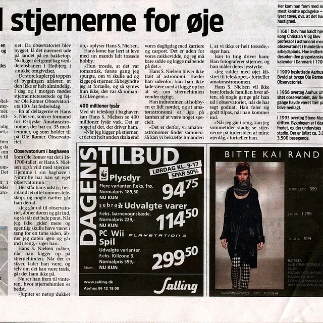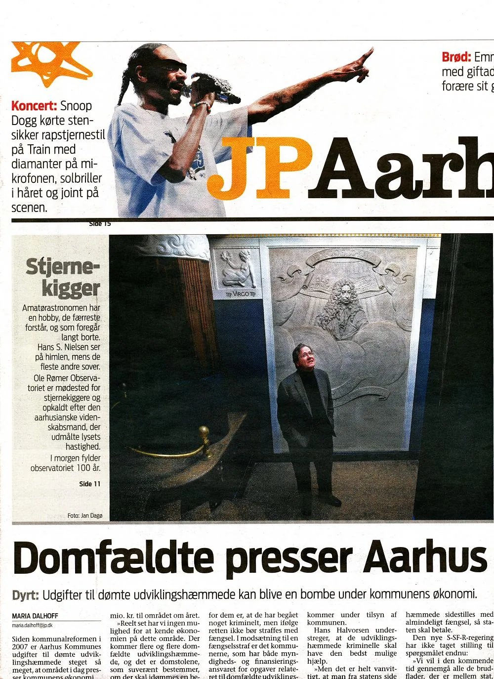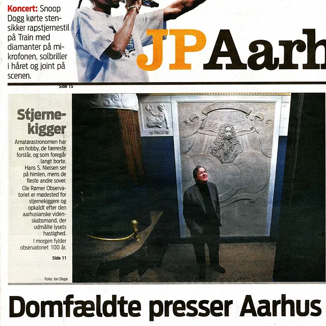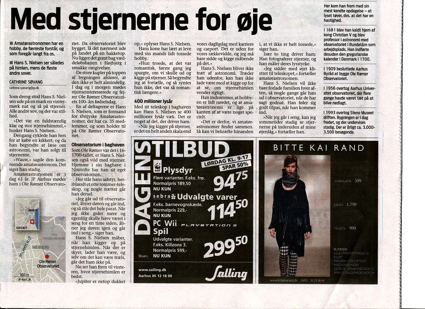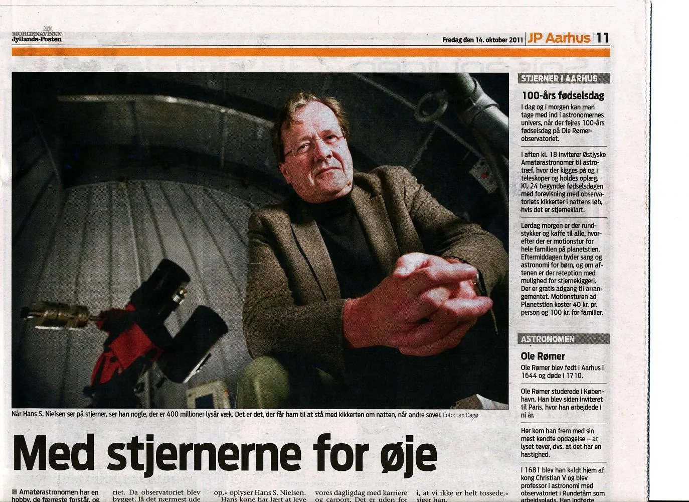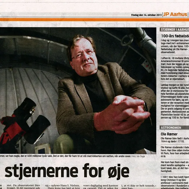 Artikel i Jyllandsposten d. 14. oktober i anledningen af Ole Rømer Observatoriets 100 års jubilæum.